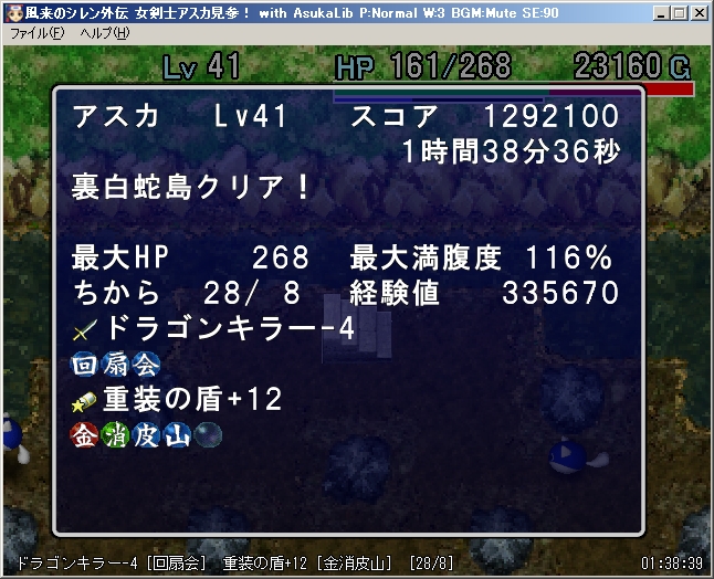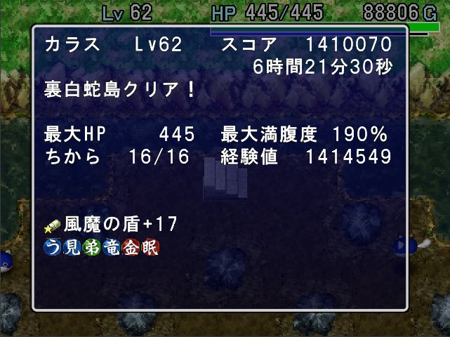 剣の印がやたら空いてるのはドドロに消されたわけでなく剣が全然出ず、命の草も見えたのが80Fとかで回復剣も作れずじまいだった為です。