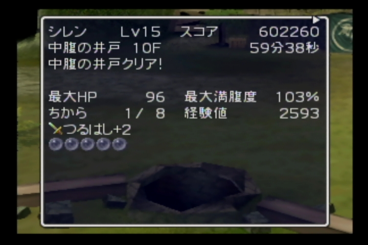 序盤にlv上げを試みるも一方通行やレンサのワナなどの稼ぎのワナがほどんど出なかったので、10Fでlv27くらいでそのまま進めていきました。