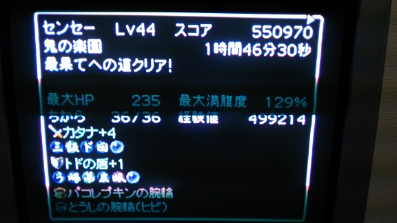 以降ラスト白紙だったのでクリアまでダイレップウと戦う事になり、大幅にロスを食らいましたがあそこで外して面白い事が起こるのが自らの風来人としての運命だと悟りました笑