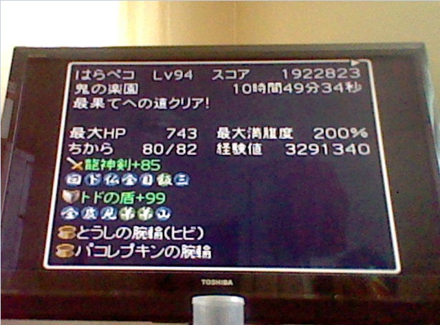 アイテムに恵まれず、パコレプキンの腕輪も中盤にやっと変化で入手。黄金の間にも行きましたが、剣が拾えず。ですが、どうにか完走できました。