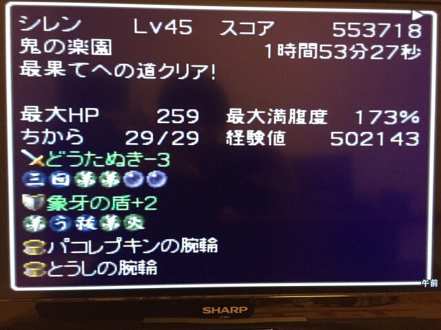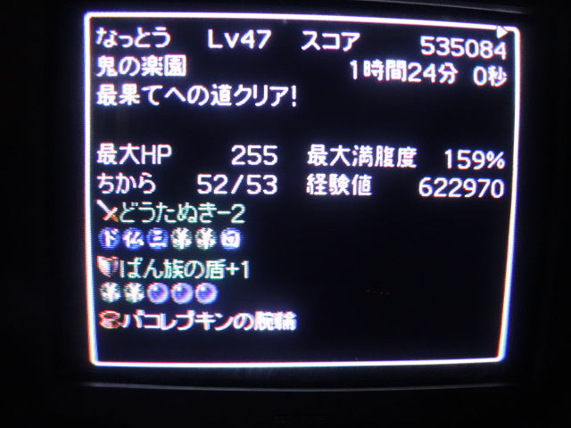 以降ラスト白紙だったのでクリアまでダイレップウと戦う事になり、大幅にロスを食らいましたがあそこで外して面白い事が起こるのが自らの風来人としての運命だと悟りました笑