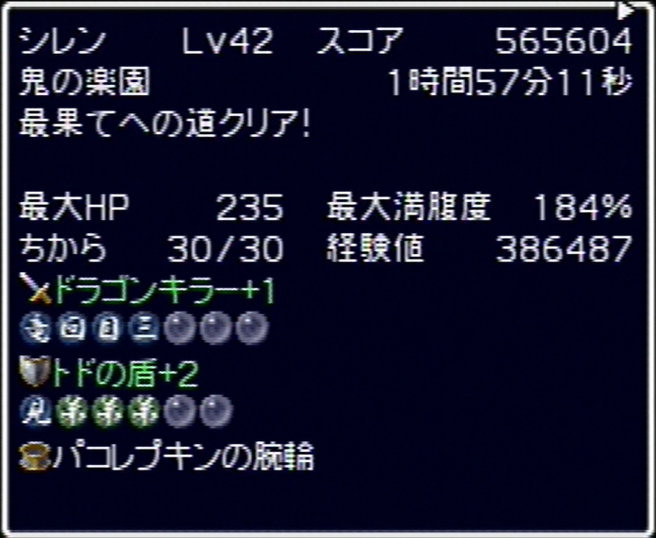 ついでに白紙水がめコンボ、パコレプキンの腕輪、ねだやしの巻物も縛りました。