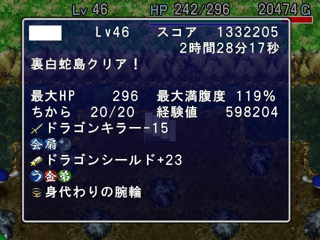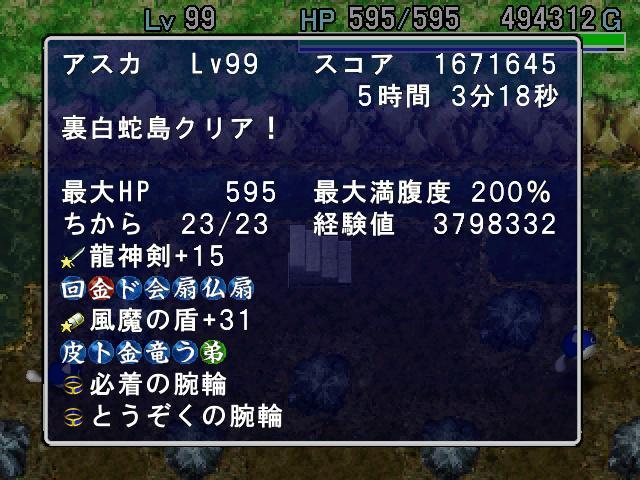まずはアイテム運がよく、20階ぐらいで、とうぞく、モンハウの巻物、転写の巻物×3、祝福の壺7つ程(店泥棒+床)がそろいました。
