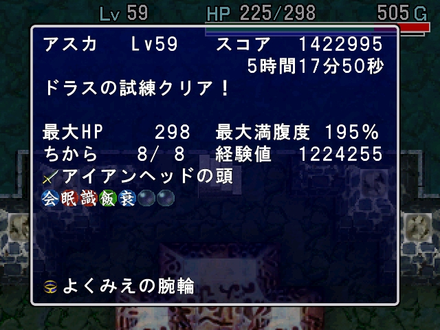 初クリアの記録です。アイアンヘッドの頭が出ないまま強引に進めるも、チェインヘッドを不幸でアイアンヘッドにしてドロップ。