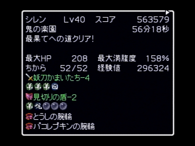 記録はタイムアタックの方で問題はありません。(10Fまでは普通にどうたぬき使ってましたので両手武器縛りとはちょっと言い難いです)